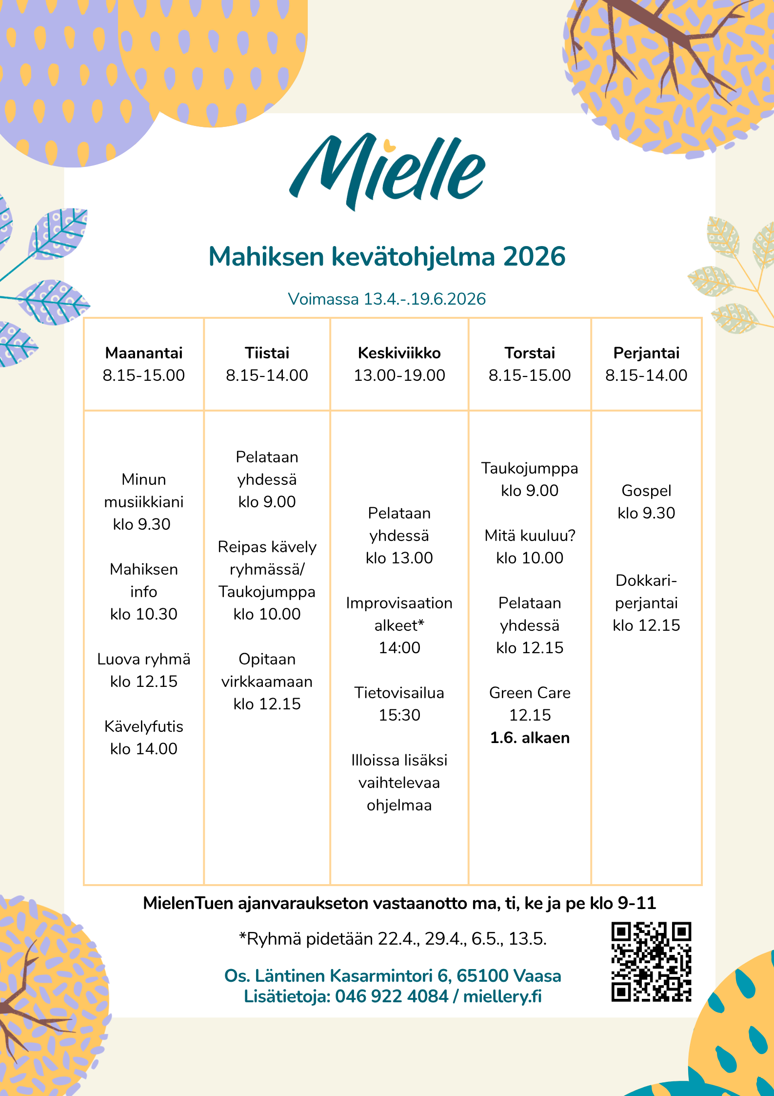 Mahiksen viikko-ohjelma 13.4.-19.6.2026